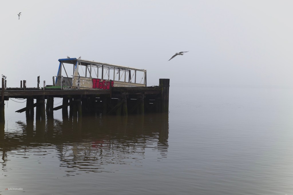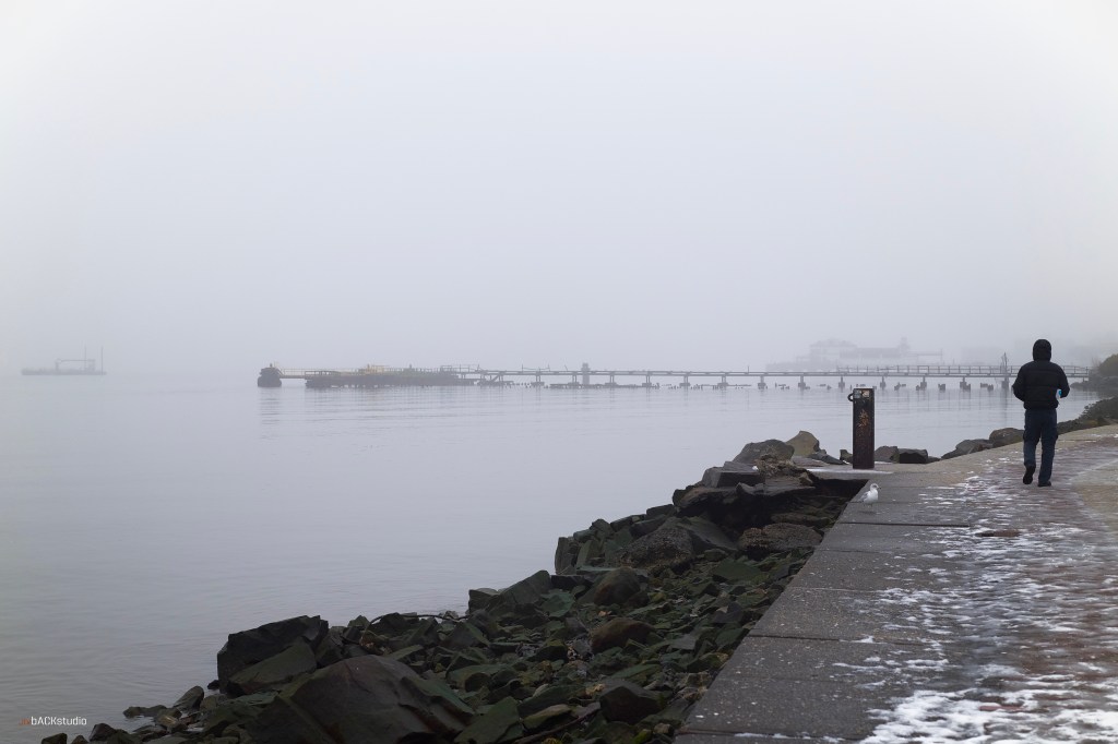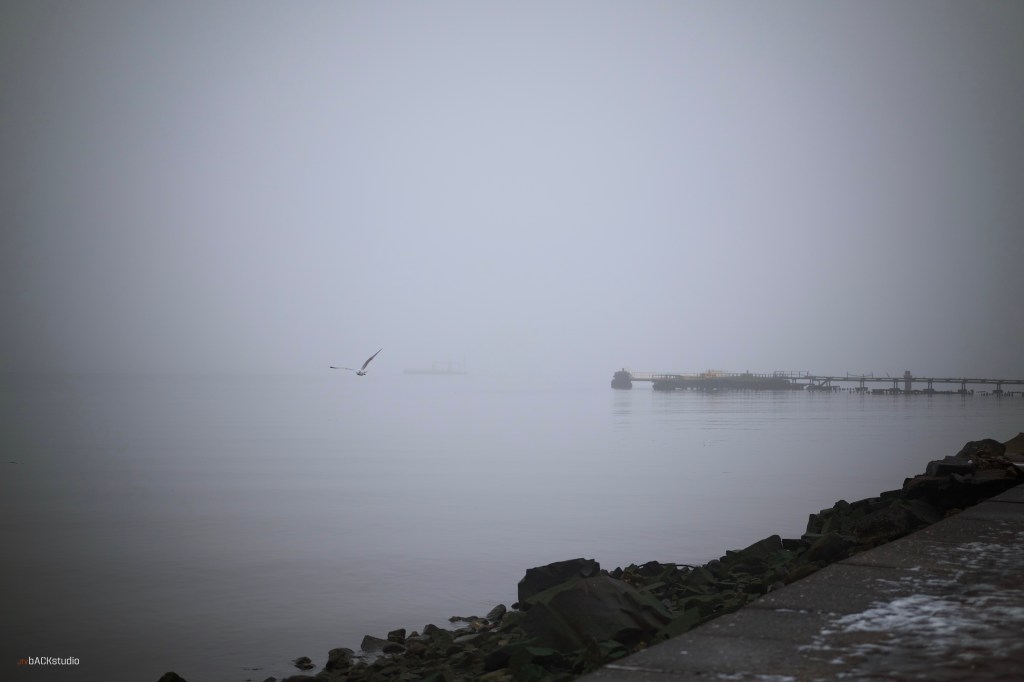 Birds are able to travel back and forth over the river deep, but for those stranded along shore, there is only the opaque sense that something dangerous lurks on the other side. Remnants of the past cling to the water, defying their inevitable drowning. The fog creates intimacy by rendering the boundaries of our vision closer than the mile or more distance to the New York shores.