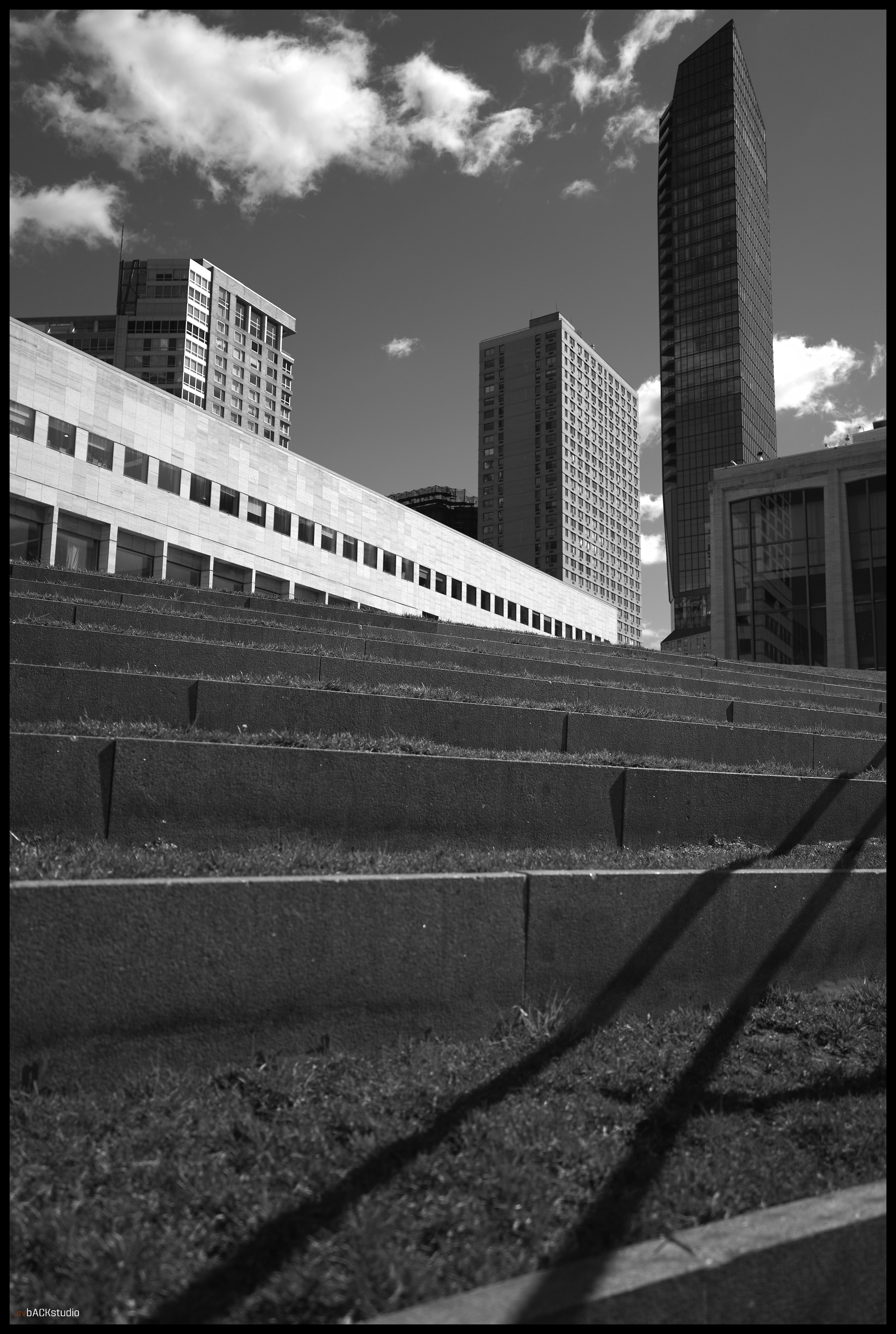Act Two: One can choose to look in, or look beyond. The scale of the space permits both, which helps add interest of views, vistas and interactions between surrounding architecture and the view from within the space. The following images are black and white explorations focusing on geometry, texture, scale and motion.