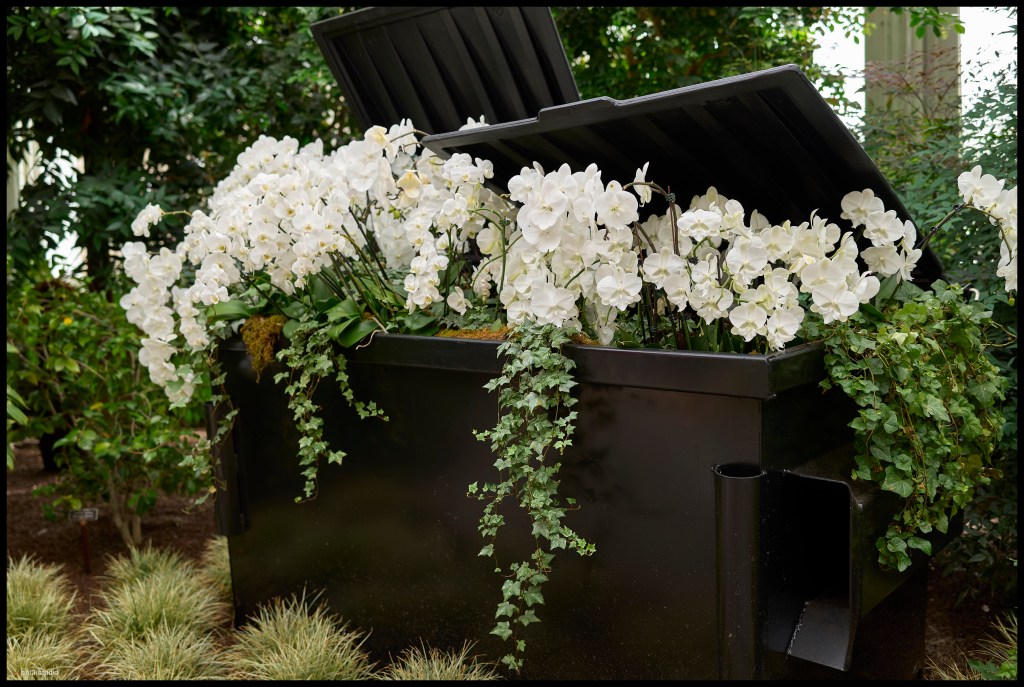 The photos above were taken on an outing to the NYBG morning trip to see the Mr. Flower Fantastic Concrete Jungle 2026 Exhibit. An installation in the Conservatory, in which the anonymous artist forces the viewer to contemplate the gritty imperfections of a built environment by creatively using a multitude of delicate orchid varieties to recreate recognizable urban objects and scenes. In contrast, I have included photos taken that same afternoon after eating lunch on Arthur Avenue in the Bronx, a short distance from the NYBG. The comparison of materials, objects and colors which revealed themselves between Arthur Avenue’s street scenes vs. the exhibit’s staged scenes, both seen that same day, are intentional.